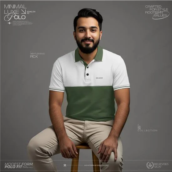 Premium Mercerized Spandex Polo – White – Olive